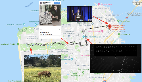 Change Game is a concept game in which you take several cups of change, you walk from the Moscone Center in San Francisco to the Golden Gate Bridge Park and give money to anyone who asks.