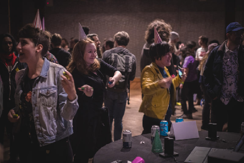 Party Baby is a party-sized localmultiplayer game about communally caring for a baby. Like a tamagotchi, Party Baby's needs decay over time. When Party Baby needs something, he'll scream! Party guests must rush to the baby and complete mini-games to feed, clean, and burp the baby.